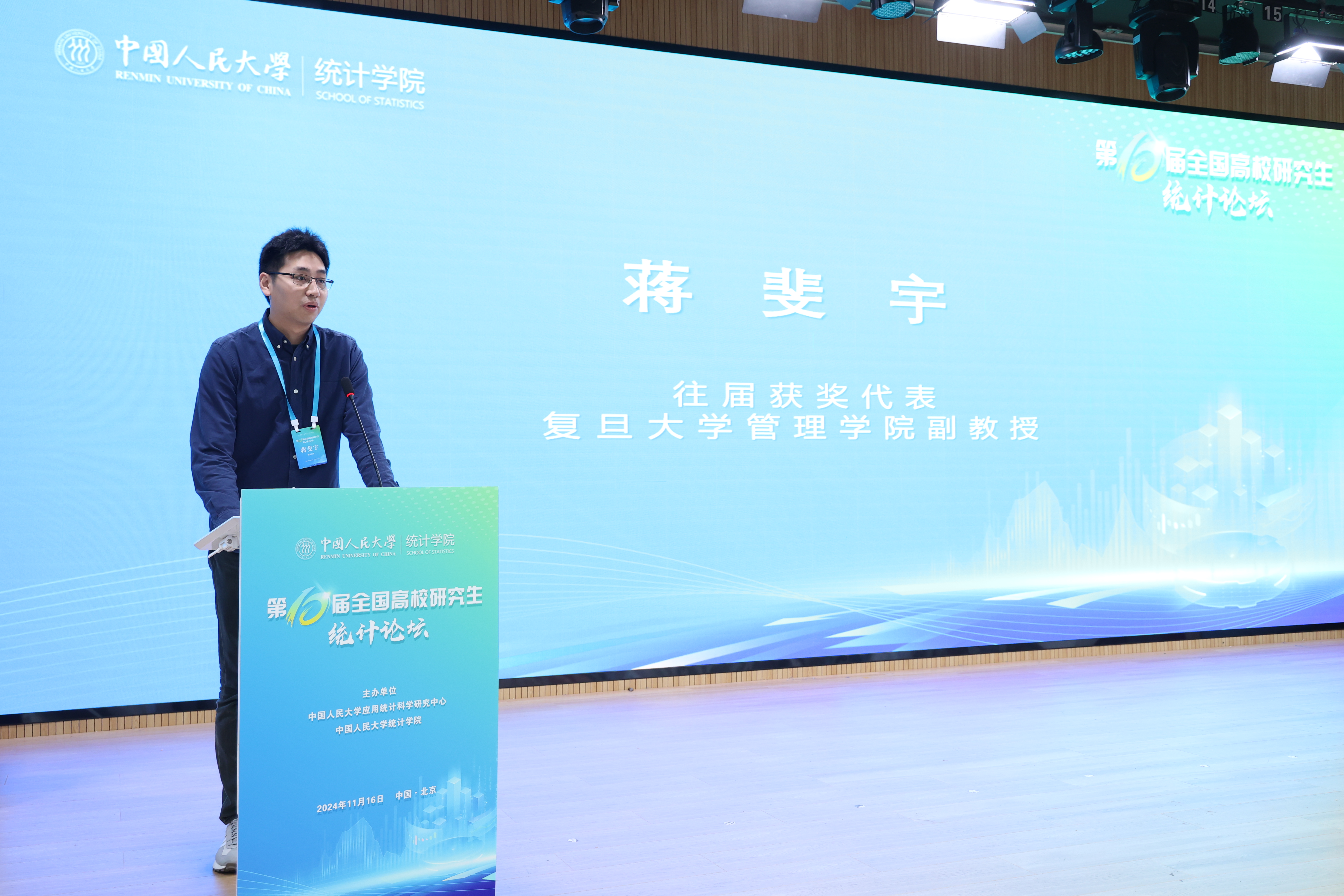 Jiang Feiyu, a "Top Ten Papers" awardee from the 6th National Postgraduate Forum on Statistics and currently an associate professor at Fudan University’s School of Management, shared insights into his academic growth. He emphasized that the forum is not only a platform for showcasing achievements but also a hub for inspiring innovation and fostering academic exchange. He encouraged students to build connections through the forum, gain inspiration through dialogue, discover their passions, and courageously explore unknown fields.