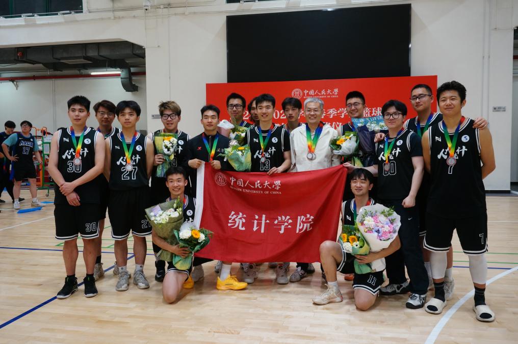 因为疫情和保研的原因,我或错过或放弃了大三的大多数比赛。不知是阅历丰富后的平静还是被学业转移去了若干精力,自己对于打球的热情也慢慢变淡了一些。时间一转眼就来到了大四,那一年的篮球比赛,是“统计三叉戟”的最后一个赛季,统院创造历史,打进了甲组决赛,以挑战者的身份对战那支如日中天的法学院。造化弄人,我在一周前的友谊赛时挫到了脚踵,比赛时只能打了重重的裹脚上场。前三节我们和对方打得有来有回,但拼到最后时刻,还是被对面的王牌控制了场面,最后以80:84憾负。虽然内心万般不甘,但我还是尽快地收拾了失利的情绪,准备着五天后同样重要的北京市首都高校杯的篮球和排球比赛。