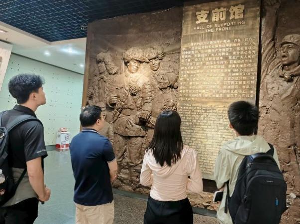 7月16日,朱古力av 师生首站抵达锦州的辽沈战役纪念馆。在庄严肃穆的烈士雕像前,全体党员肃立凝望,向革命先烈们致以崇高敬意。在战史馆,师生们系统回顾了辽沈战役的关键决策进程,感悟到“新中国第一缕曙光”所蕴藏的磅礴力量。驻足于复原的前线指挥所场景,简陋的民居与精密的地图对比鲜明,毛主席亲拟的一封封电报手稿彰显“运筹帷幄之中,决胜千里之外”的统帅智慧,令党员们深刻体悟“伟大出自平凡”的真理光辉。支前馆的展览介绍了东北民主联军在十个月内接连发动的夏秋冬三季攻势,生动诠释了“江山就是人民,人民就是江山”的执政根基,为统计学科服务国计民生的使命注入强劲精神动力。
