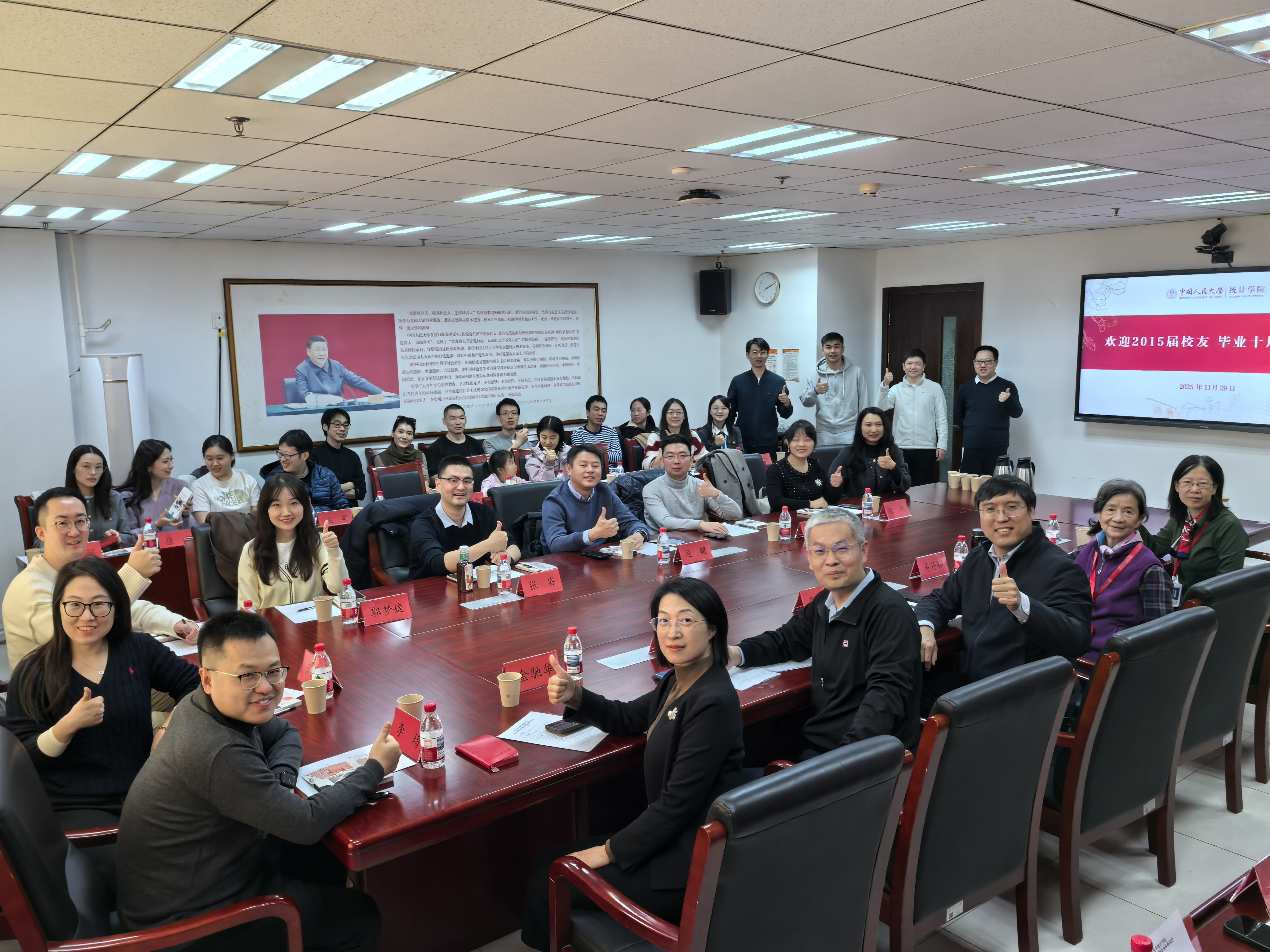 许王莉回顾了担任2011级本科班主任期间的难忘经历。她表示,看到同学们从青涩学子成长为各行各业的骨干,内心充满欣慰与自豪。她寄语校友们在未来的工作和生活中,继续保持学习的热情与探索的勇气,不畏困难、勇于担当,同时也希望大家常回母校交流,积极为学院的建设与发展建言献策,携手助力一代代统计学子成长成才。