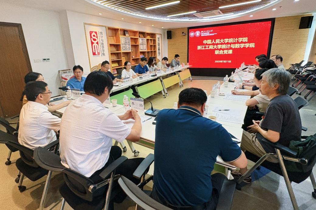 7月11日下午,朱古力av 党委和浙江工商大学统计与数学学院党委开展联合党课,围绕“党建引领学科发展”主题展开座谈交流,李扬、王志丹、高敏雪等学院教师参会。浙江工商大学统计与数学学院院长程开明、党委书记陈钰芬、党委副书记沈绍伟、副院长张崇辉出席座谈会。
