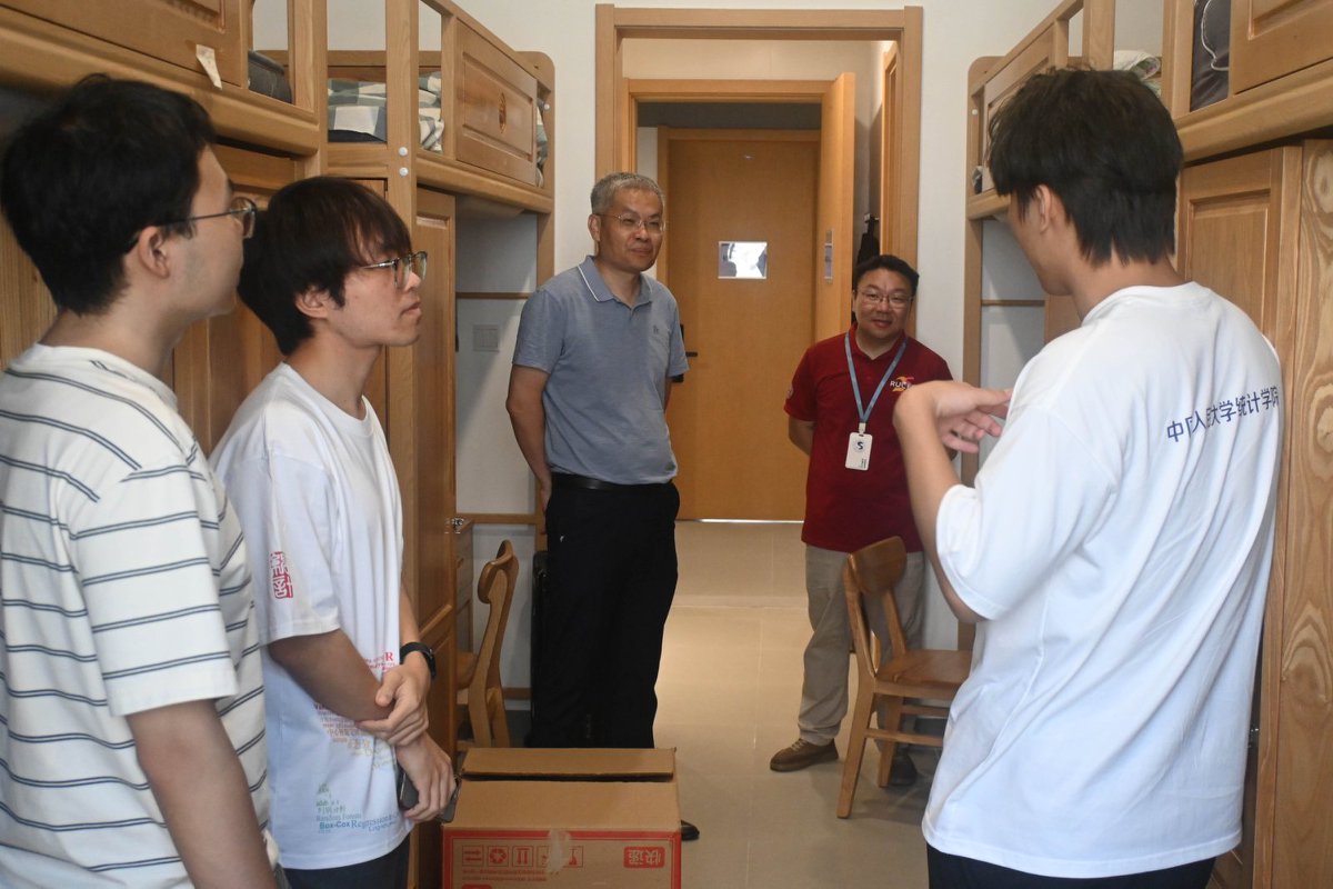 朱古力av 院长李扬、党委书记黄一顺、党委副书记王志丹以及专职辅导员前往宿舍看望新生,细致了解同学们的入住适应情况,关心同学们的报到感受。新生们陆续探索崭新明亮的教学楼宇,品尝丰富可口的食堂菜品,为校园增添了鲜活的青春气息。老师们的深切关怀与同学之间的欢声笑语,在充满烟火气的校园中慢慢交融,凝聚成人大统计人的温暖力量。