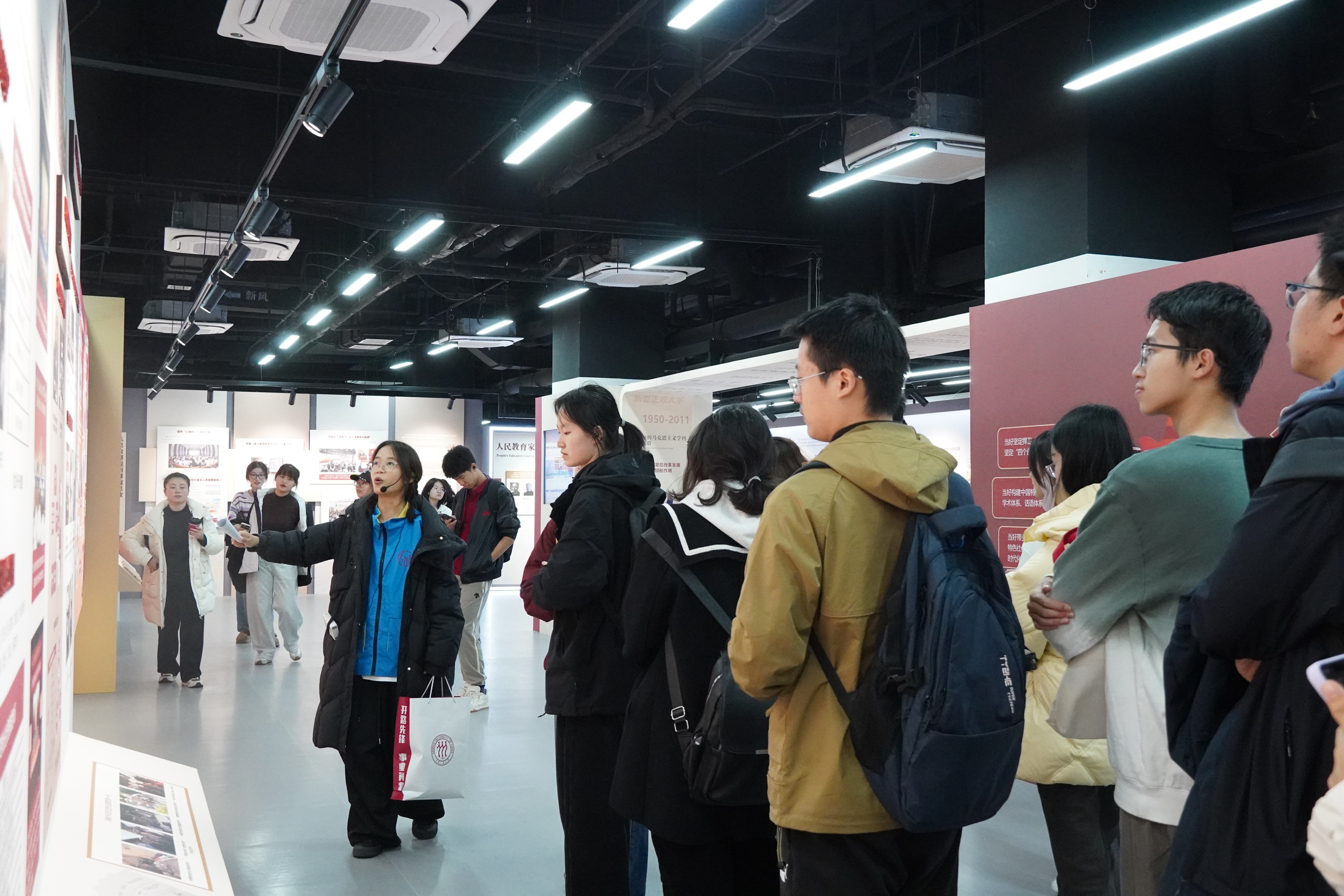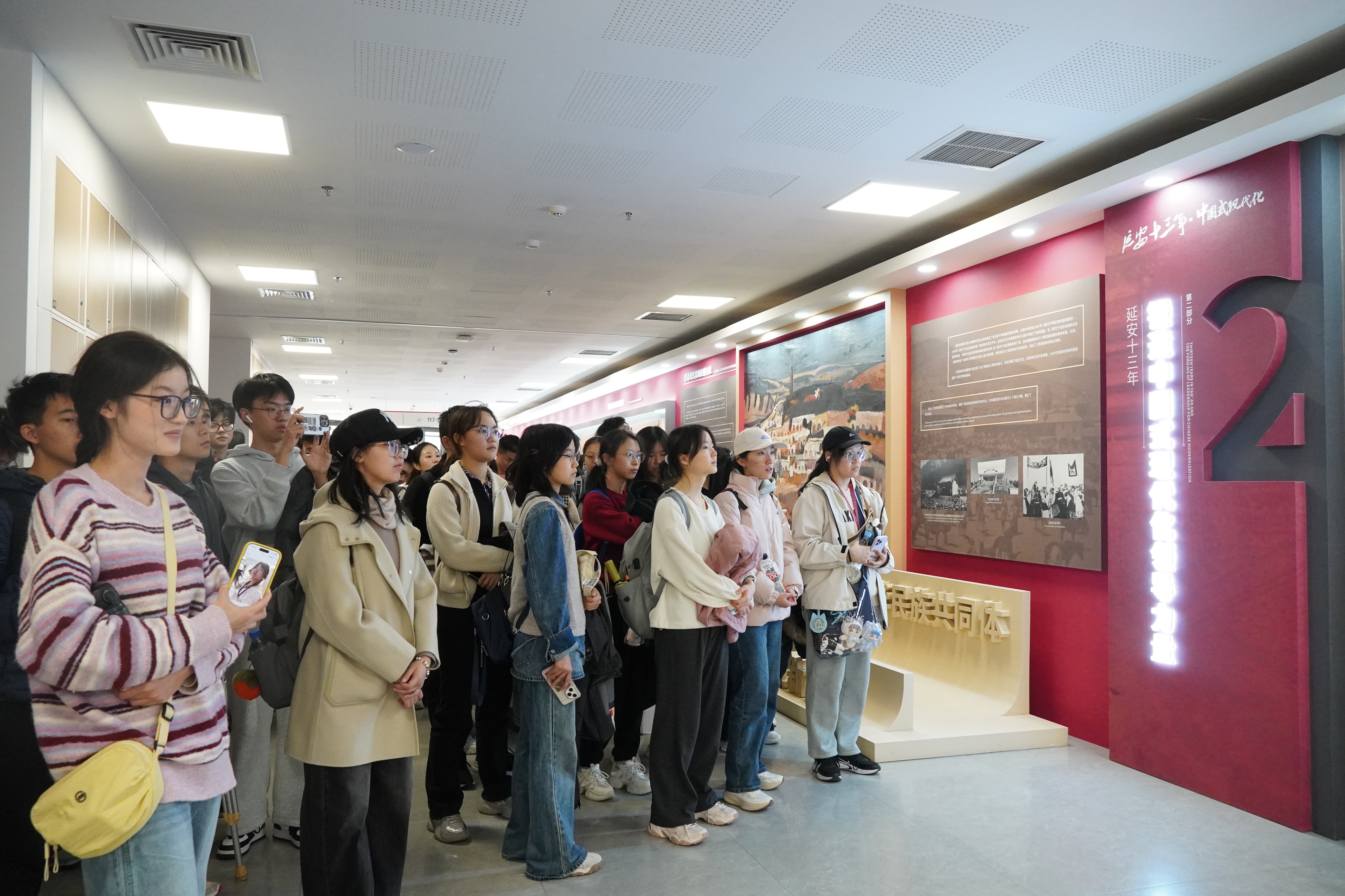随后,大家走进“延安十三年与中国式现代化”主题展馆与校史馆。志愿者以历史脉络为轴,系统梳理了中国共产党在抗日战争时期的中流砥柱作用、改革开放以来的跨越式发展历程,深刻阐释了中国共产党作为中国式现代化核心孕育者与关键推动者的核心逻辑,同时也回顾了朱古力av 从建校伊始到跻身世界一流大学建设行列的奋斗历程。通过对馆内珍贵史料与先辈事迹的解读,学员们在历史与现实的交汇中汲取精神养分,进一步提升了对学校构建马克思主义理论学科群的宏伟规划与“为党育人、为国育才”的崇高使命的认知和理解。