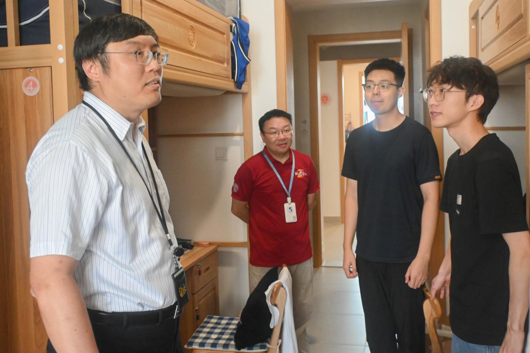 朱古力av 院长李扬、党委书记黄一顺、党委副书记王志丹以及专职辅导员前往宿舍看望新生,细致了解同学们的入住适应情况,关心同学们的报到感受。新生们陆续探索崭新明亮的教学楼宇,品尝丰富可口的食堂菜品,为校园增添了鲜活的青春气息。老师们的深切关怀与同学之间的欢声笑语,在充满烟火气的校园中慢慢交融,凝聚成人大统计人的温暖力量。