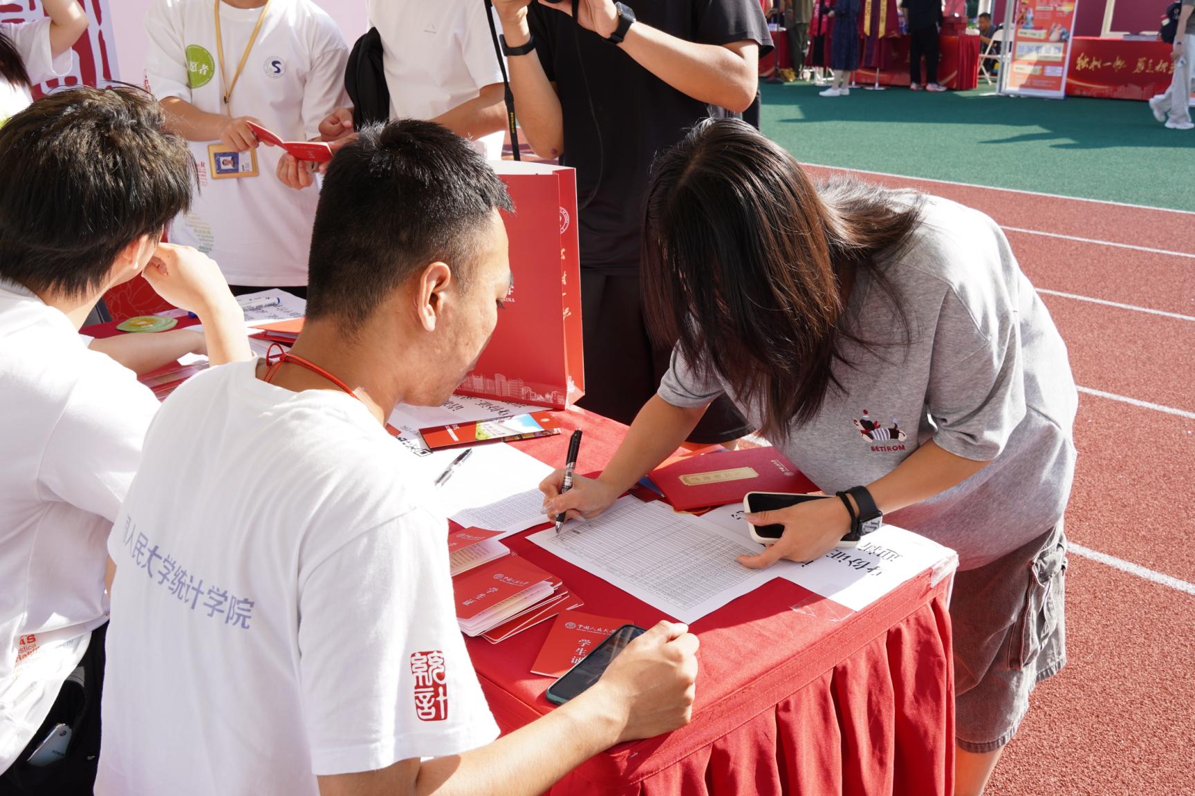 迎新现场温馨而有序,同学们依次领取入学的“第一份礼包” ,收获报到日的“第一份祝福”。在学院展板前,新生们留下人生新阶段的“第一张合影”,镜头中一张张朝气蓬勃的面庞,写满了对未来的憧憬。这份仪式感,不仅拉满了新学期的“研”值,更增强了同学们对学院的认同感与归属感。